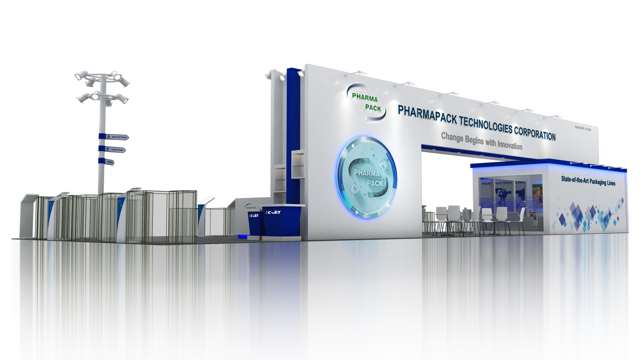 琺瑪珈集團(tuán)自2002年成立至今,致力于智能包裝及標(biāo)識設(shè)備的研發(fā)、制造、銷售及整體配套服務(wù)。公司擁有“Pharmapack”和“EC-JET”兩大品牌。 “Pharmapack”專注于智能包裝整線生產(chǎn)系統(tǒng)的研發(fā)、制造及集成,產(chǎn)品系列包括數(shù)粒智能包裝生產(chǎn)線、燈檢智能包裝生產(chǎn)線、軟包裝智能生產(chǎn)線及其它整線配套單機(jī)設(shè)備;“EC-JET”專注于標(biāo)識設(shè)備的研發(fā)、制造、銷售及服務(wù),產(chǎn)品系列包括小字符噴碼機(jī)、大字符噴碼機(jī)、激光噴碼機(jī)、高解析噴碼機(jī)及相關(guān)工業(yè)耗材。公司的產(chǎn)品廣泛應(yīng)用于制藥、食品、飲料、糖果、化妝品及電子產(chǎn)品等行業(yè)。這次參展的琺瑪珈用流暢優(yōu)美的展臺設(shè)計線條吸引了眾多觀眾駐足,中勵展覽資深展臺設(shè)計師為其打造的科技藍(lán)色調(diào),也讓琺瑪珈的產(chǎn)品更顯科技感和專業(yè)度。